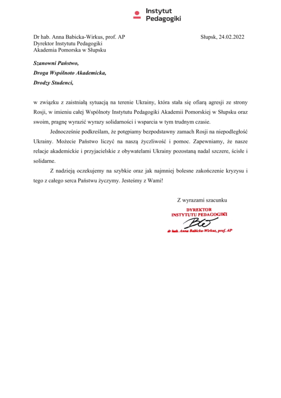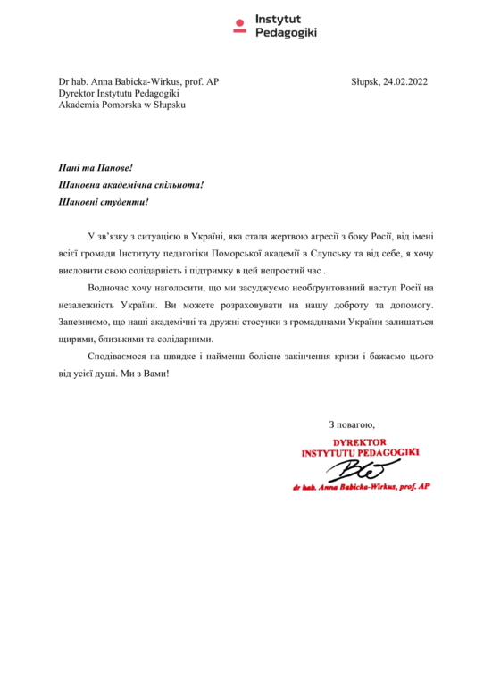 Uniwersytet Pomorski w Słupsku - Solidarni z Ukrainą