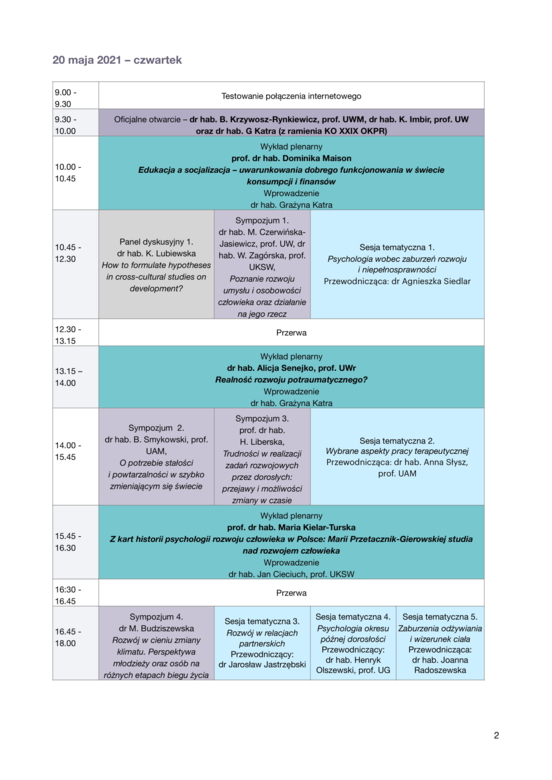 6 maja 2021, 12:03XXIX OGÓLNOPOLSKA KONFERENCJA PSYCHOLOGII ROZWOJOWEJ "WSPÓŁCZESNE DROGI ROZWOJU MIĘDZY OBAWĄ A NADZIEJĄ"WYDARZENIE ONLINE 20-22 MAJA 2021.
