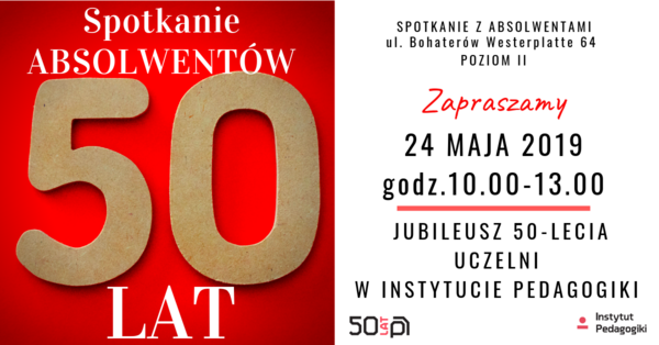 Zapraszamy Absolwentów i sympatyków Instytutu Pedagogiki w dniu 24 maja 2019r. na spotkanie w ramach obchodów 50-lecia Uczelni.